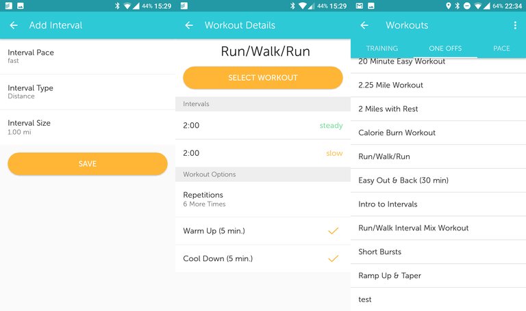 Intervaly jsou rozdělené na čas nebo vzdálenost, ve kterých si definujete pomalé, střední nebo rychlé tempo. Přidat si lze i rozehřání a vyklusání na závěr.
