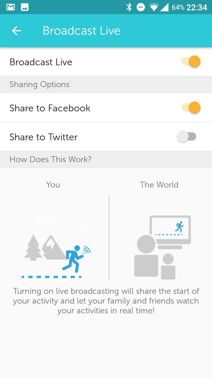 Vše má probíhat tak, že na začátku aktivity se na Twitter nebo Facebook nasdílí vaše url, kde vás mohou kamarádi a blízcí sledovat. Už jen to, že se dává někam na Facebook mi přijde ujetý. Kdybych to chtěl používat, tak chci adresu, kterou mohu dát kdekoliv a komukoliv. Druhá věc je ta, že se mi při testování ta url stejně nikde nenasdílela…