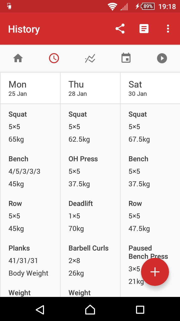 Celý proces se skládá ze dvou druhů cvičení - A a B, které se střídají a posilují jiné partie. Začínáte na nejnižších vahách a s každým dalším cvičením zvyšujete zátěž. Nemůže se tak stát, že se zaseknete na stejném místě. Aplikace vás zároveň neomezuje ve vašich osobních prioritách. Prakticky všechno si můžete nastavit. Od počátečních vah po jednotlivé přírůstky. Dokonce je možné vložit si i počty svých kotoučů a aplikace vám sama spočítá, kolik a jaké nasadit na činku. Snad to moc nezmenšuje mozek.
