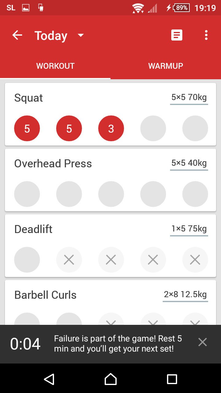 Aplikace StrongLifts 5×5 má na srdci i vaše zdraví, a proto sama připraví sety s nižšími vahami, na kterých se rozcvičíte. Ještě si můžete přidávat vlastní poznámky ke svému výkonu.