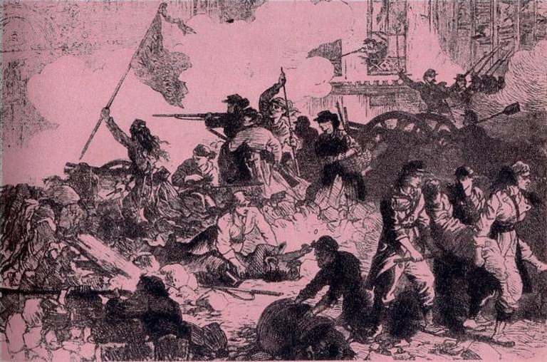 Začátkem dubna zahájila buržoazní vláda útok na revoluční Paříž a byla přesvědčena, že dobytí města bude snadnou záležitostí. Pařížský lid se však nevzdal a hrdinně bránil své město a svou vládu. Proti stopadesátitisícové, dobře vyzbrojené buržoazní armádě stálo asi 40 000 ozbrojených komunardů. Obránci Paříže měli sice málo těžkých děl a chybělo jim vedení zkušených důstojníků, byli však naplněni revolučním nadšením a odhodláním bojovat. Po jejich boku bojovali i ženy a děti. Ženy organizovali zdravotnickou službu, často i v prudké palbě ošetřovaly raněné, a některé z nich bojovaly s puškou v ruce. Vznikl dokonce zvláštní ženský prapor, který neohroženě hájil město proti postupu nepřátelských vojsk. Se zbraní v ruce bojovali i někteří dvanáctiletí až čtrnáctiletí chlapci. Také ti se vyznamenávali statečností. V dešti nepřátelských střel přinášeli děti obránci barikád jídlo a vodu. Nebojácně zachraňovali potraviny a zbraně z míst, z nichž komunardi ustupovali. Chlapci se účastnili bodákových útoků a mnoho jich padlo pod rudým praporem revoluce. Vládní vojska měla početní převahu, lepší výzbroj a zkušení důstojníky v čele. A přece jim po několik týdnu nedařilo dosáhnout rozhodujícího úspěchu. Nepomáhala ani těžká dělostřelba. Komunardi bojovali o každý metr ulice, o každý dům, o každou barikádu. Po boku francouzských dělníků bránili Paříž i ruští, polští, němečtí a maďarští revolucionáři.