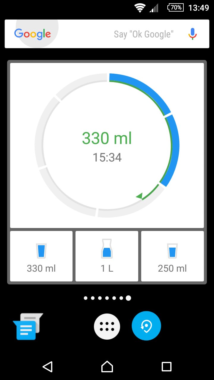 Bohužel jsem zjistil, že žádná aplikace nemá všechno. Jediný, kdo disponoval API přístupem, byl Fitbit, ale ten zas neměl notifikace a widgety. Nakonec jsem z celé plejády služeb vybral Hydro Coach.