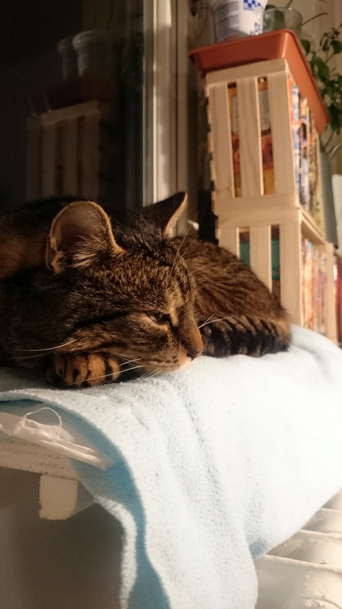 O zmocnění se nějaké mačky jsem uvažoval pár let, ale teprve nedávno nastaly vhodné podmínky to uskutečnit. Připravil jí místo na čůrání, místo na krmení i místo na spaní - to jest v mé posteli - a zbývala mi už jen jediná věc - kočka samotná. Mohl jsem sice někam přijít a někomu ji sebrat, ale mé racionální uvažování zvítězilo, takže jsem si pro ni zašel do útulku. Trochu jsem se bál, že si nevyberu a i oni sami mě hned varovali, že jsou dost probraní. Pravdou však bylo, že zakočkovat byt bych si mohl bez nejmenších problémů.