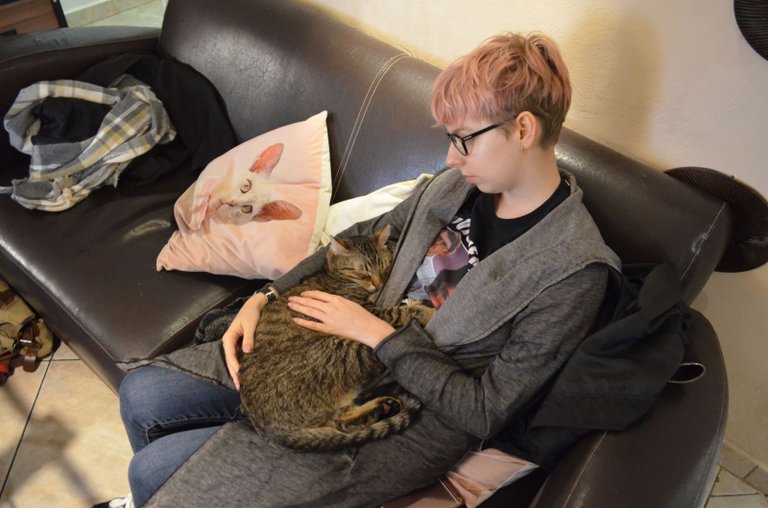 Někdy po obědě o víkendech tu bývá úžasný klid a několikrát jsme tam zůstali sami. A naše nejoblíbenější kočka je rozhodně Bublina. Má obrovskou zálibu v hlazení. Tak jako my!