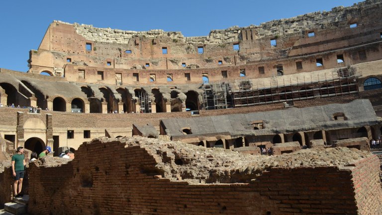 Dovnitř se stála slušná fronta a museli jsme se dostat přes bezpečnostní rámy. Nemohu tvrdit, že by jim příliš fungovaly. Už první pohled do středu Kolosea jasně ukázal, že všichni měli pravdu - je uvnitř hnusné. Jako prsatá blondýna - navenek krásná, ale když nahlédnete dovnitř...
