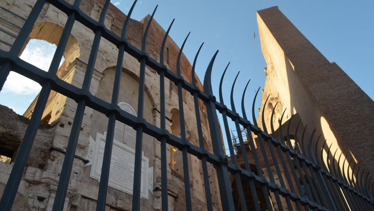 Koloseum si hlídají jako národní poklad. Prakticky ze všech stran je oplocené. V době naší návštěvy tam byly dokonce ploty dva - jeden extra hnusný, co se používá na staveništích. Stejně chráněný byl i Konstantinům oblouk, který je poblíž. Je to škoda, ale kdyby tam plot nebyl, asi by lidi ty památky odloupali.