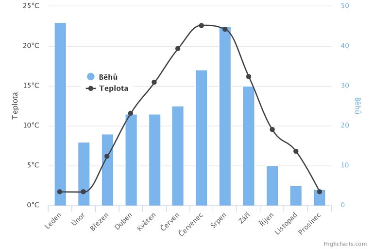 A zde jsou průměrné teploty za jednotlivé měsíce, ve kterých běhám: